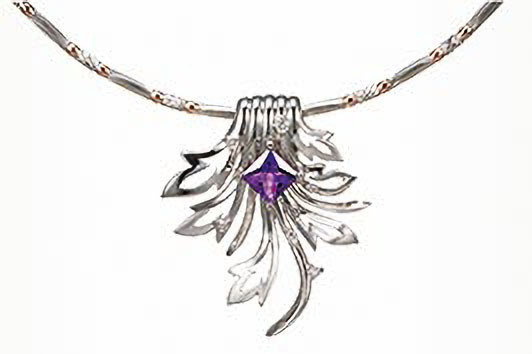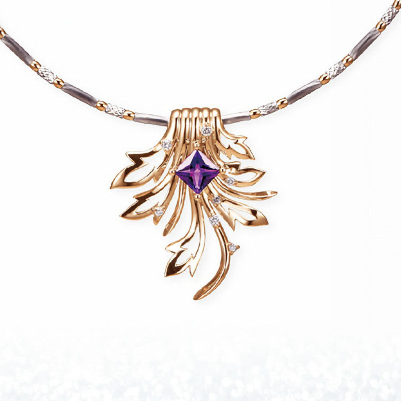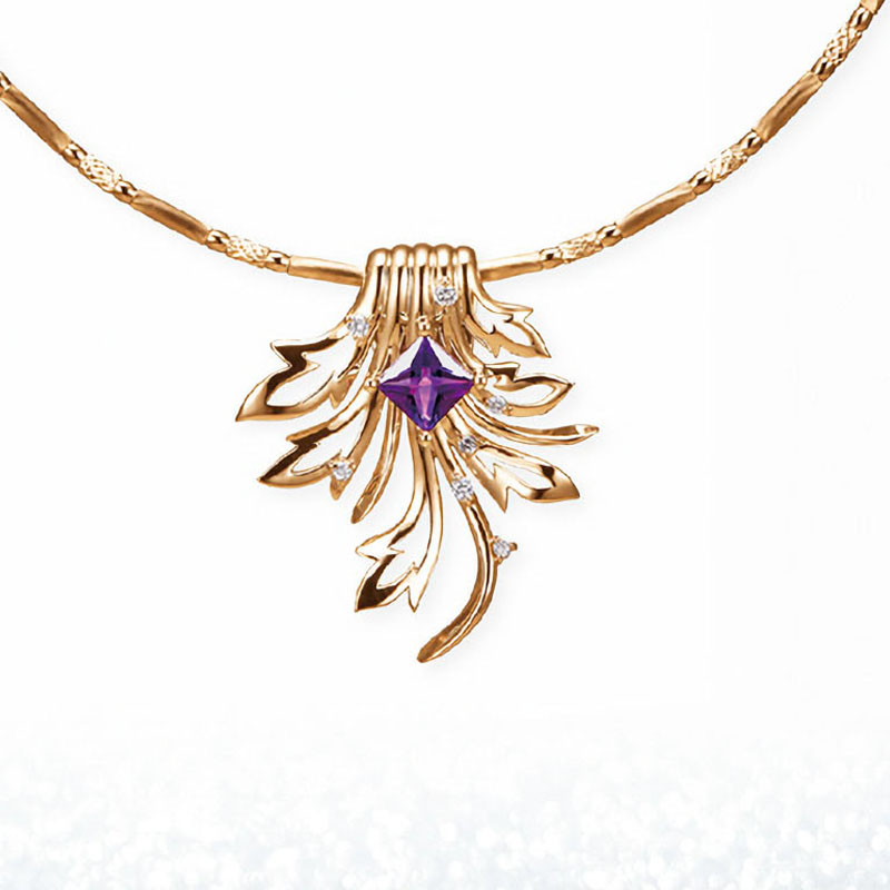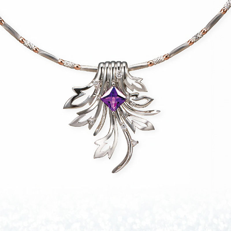 拡がる翼と燃え上がる炎をモチーフにしたジュエリー。