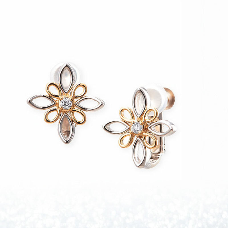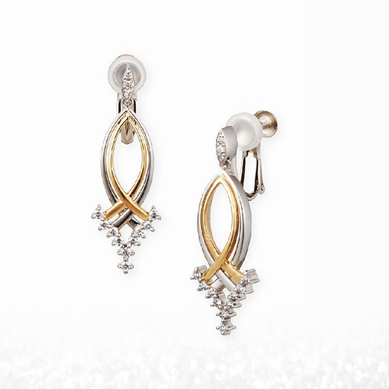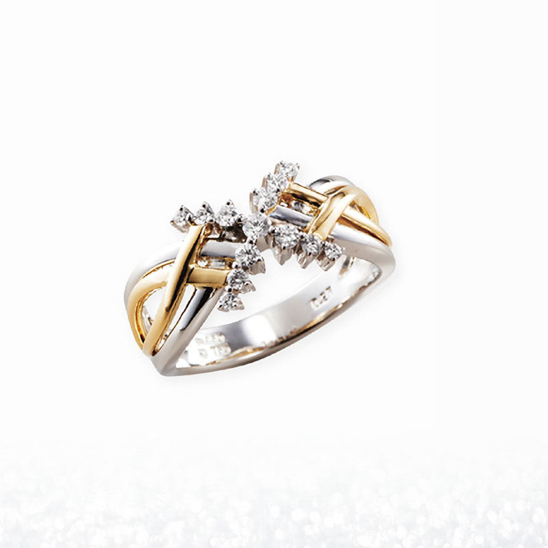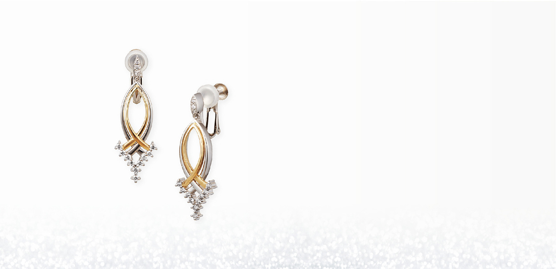 四つ葉結びをプラチナとゴールドで重ね合わせたデザイン。
