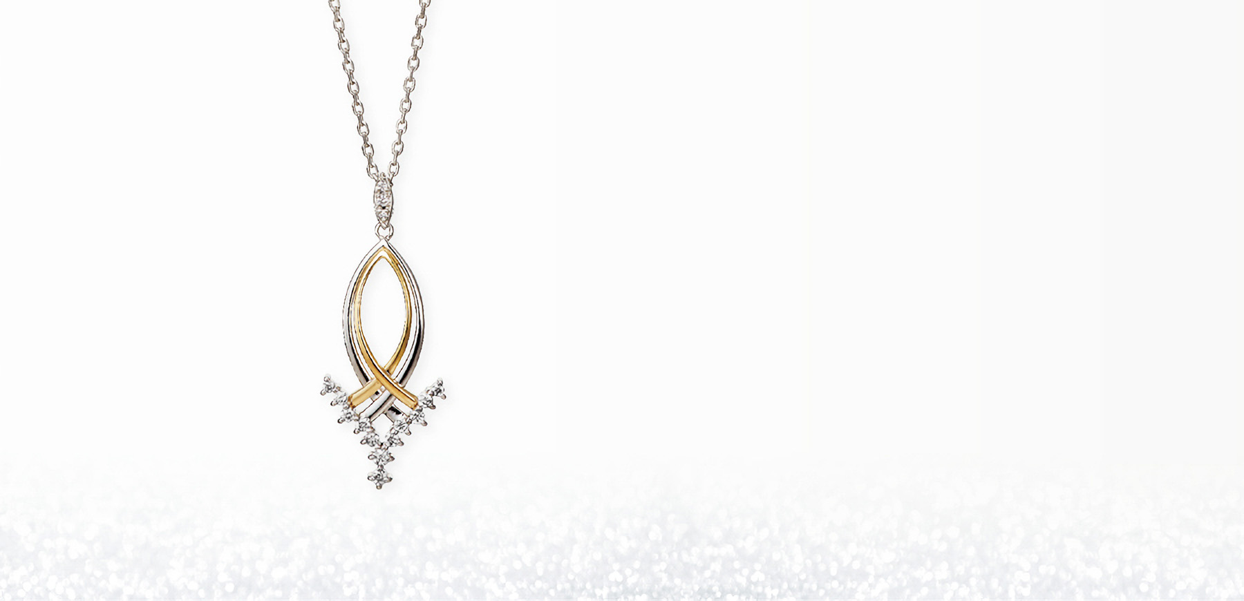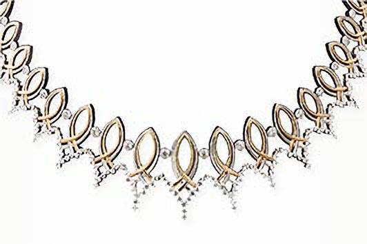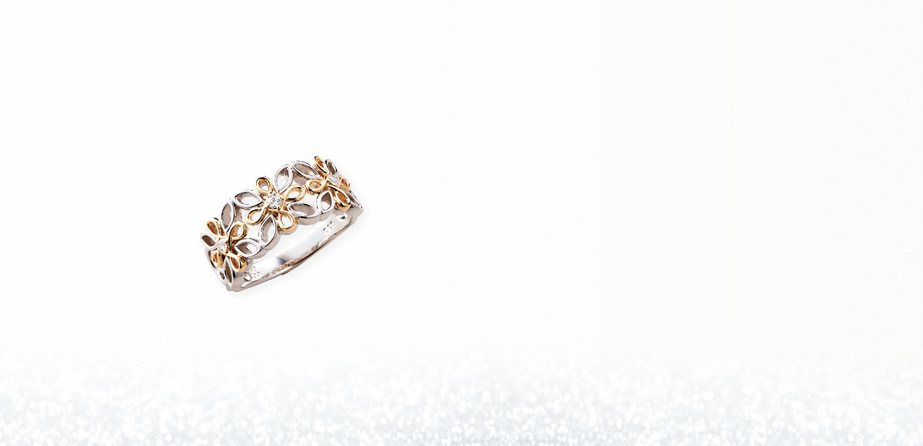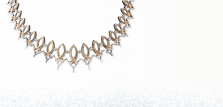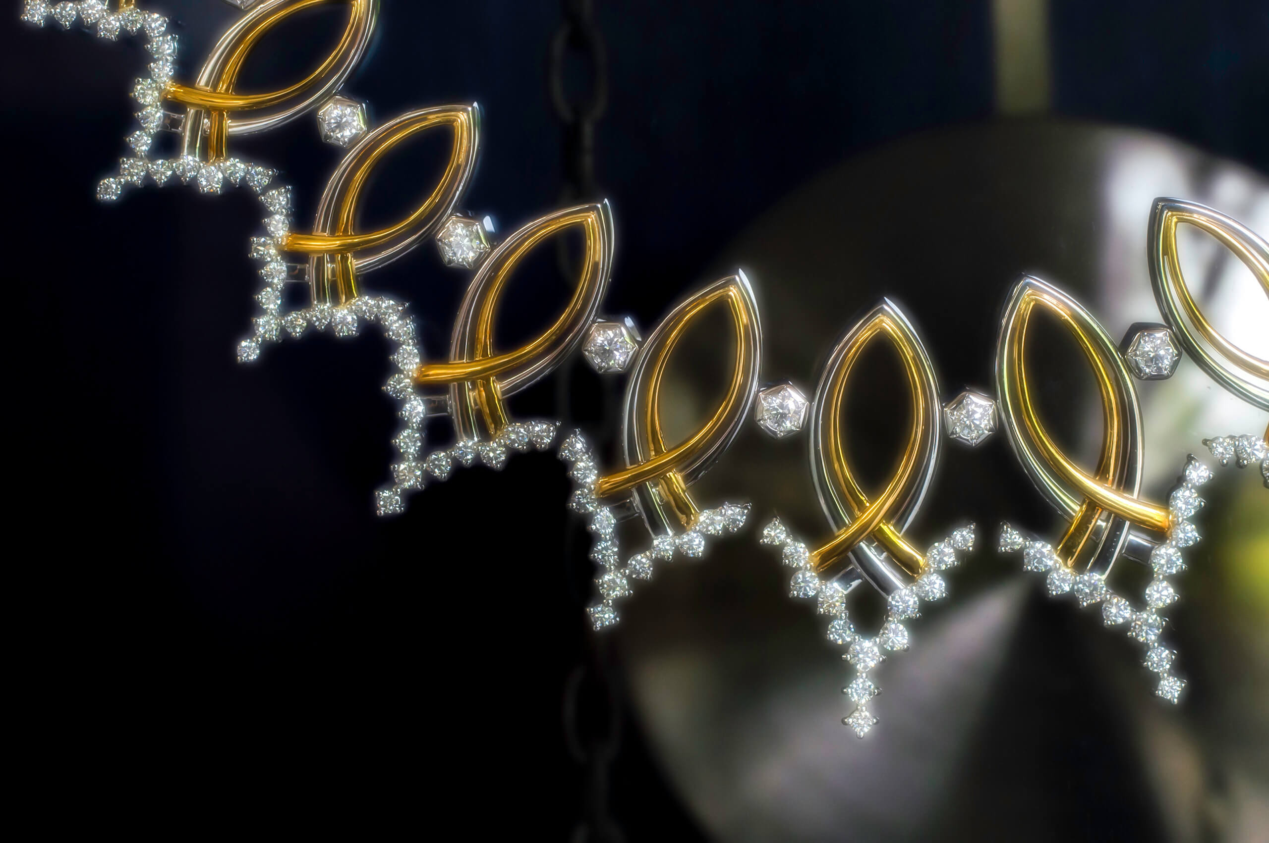 四つ葉結びをプラチナとゴールドで重ね合わせたデザイン。