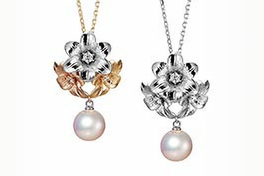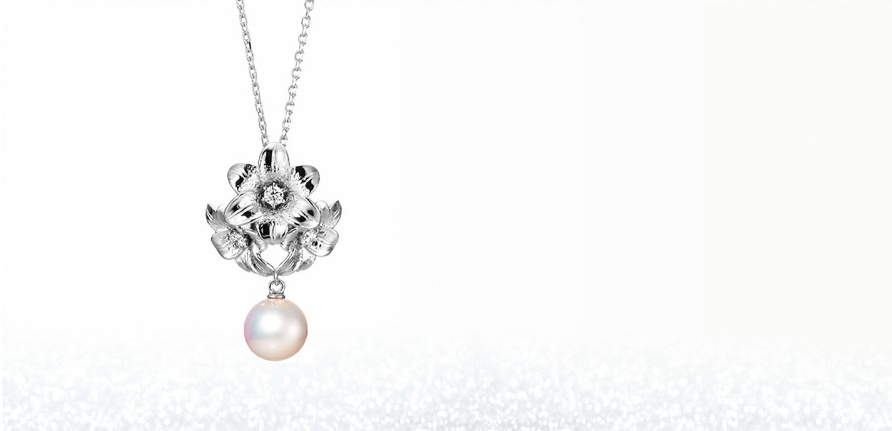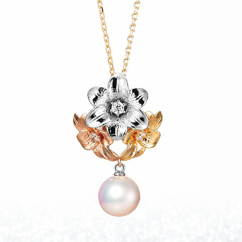 -K18/Pt950 湖水パール ダイヤモンド ペンダント