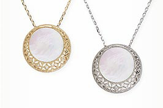 〈左〉K18 白蝶貝 ダイヤモンド ペンダント