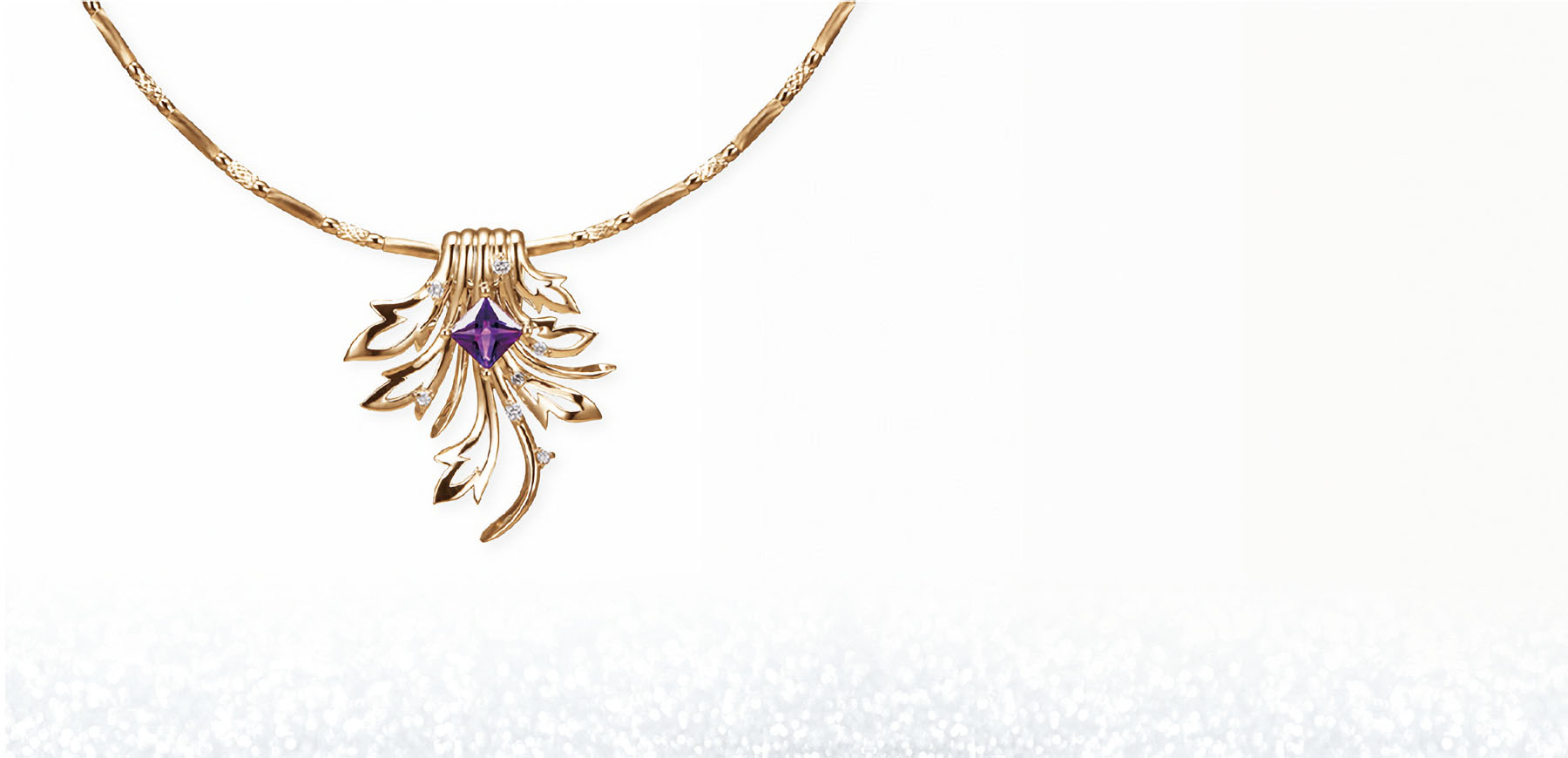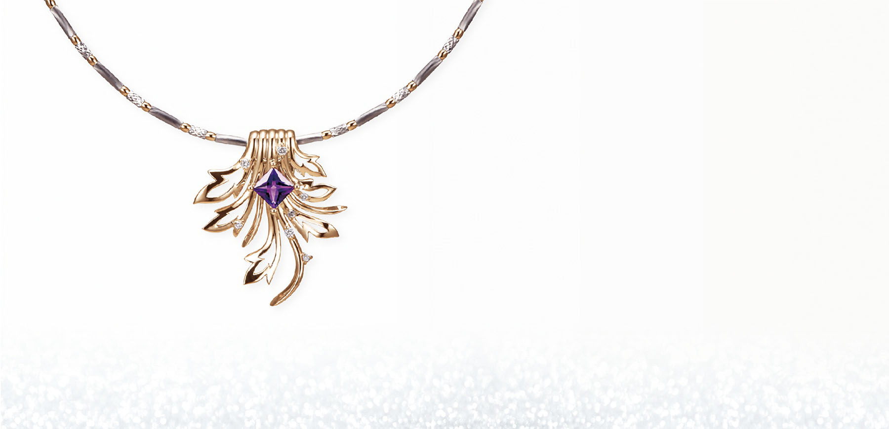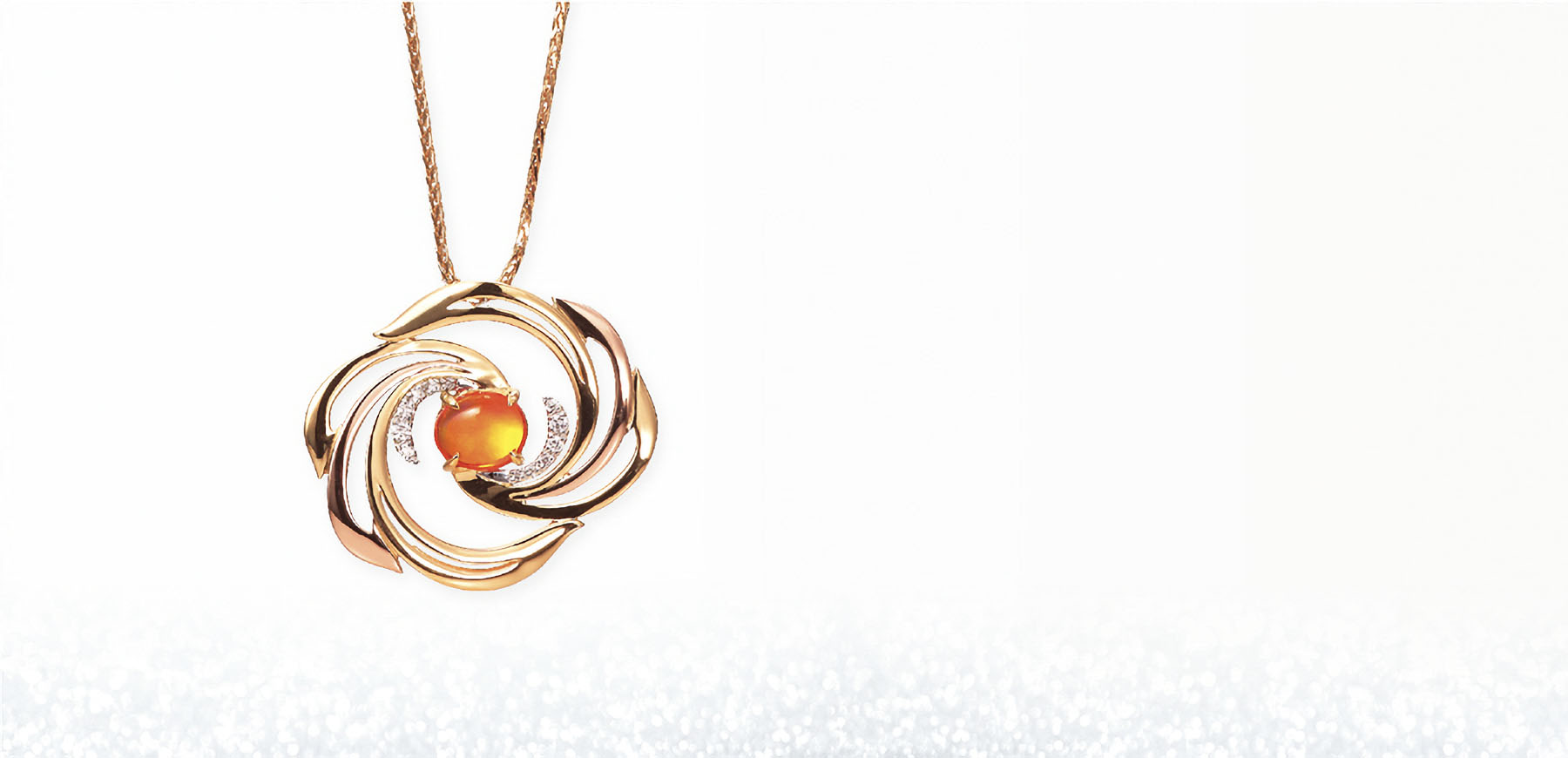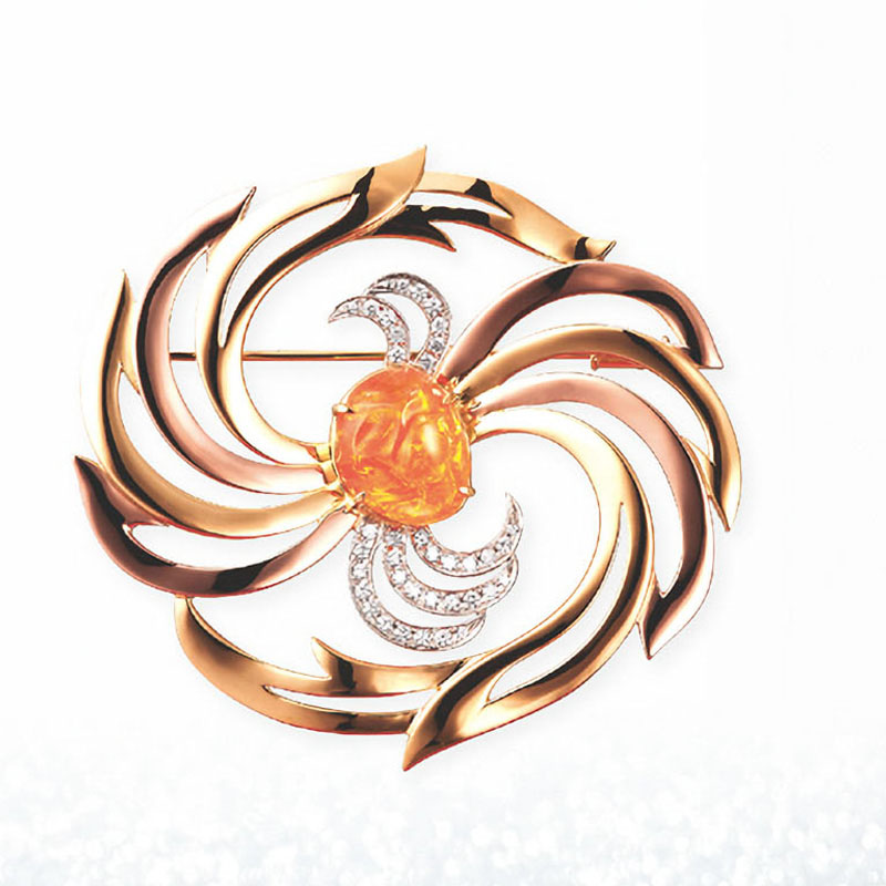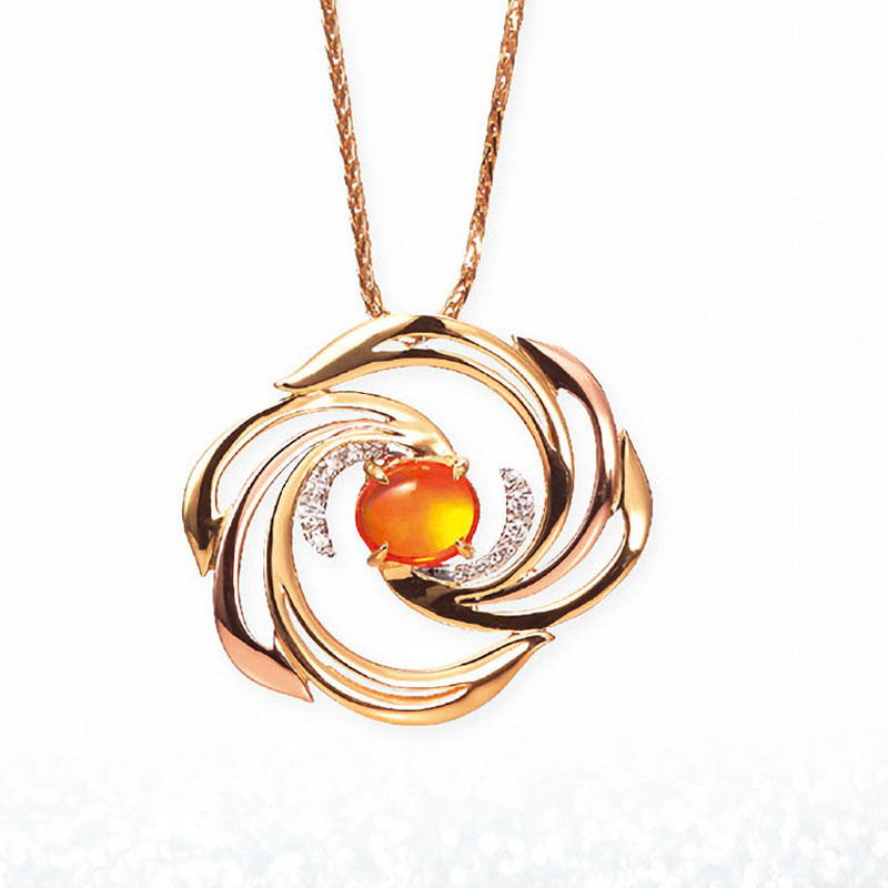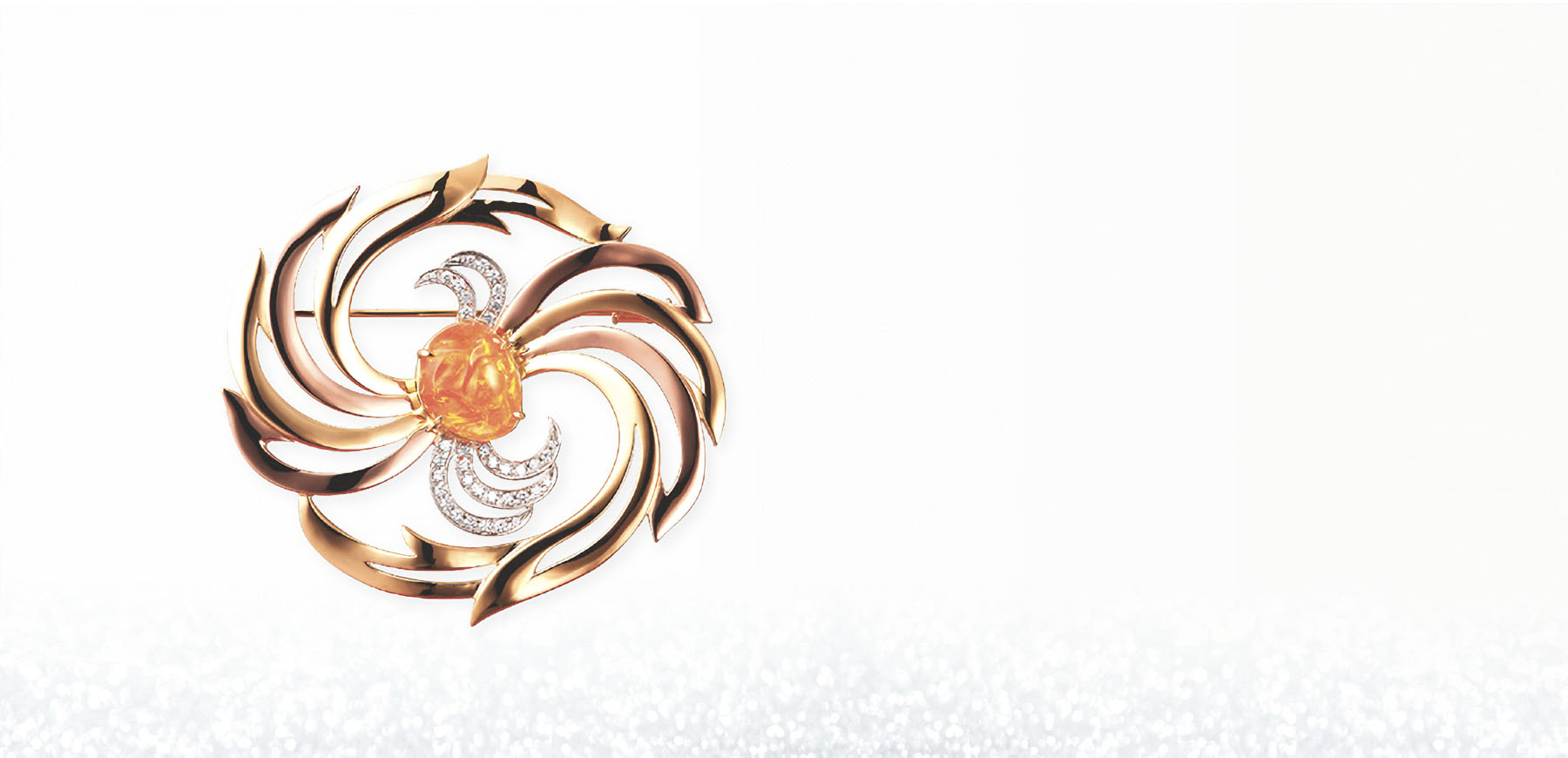 拡がる翼と燃え上がる炎をモチーフにしたジュエリー。