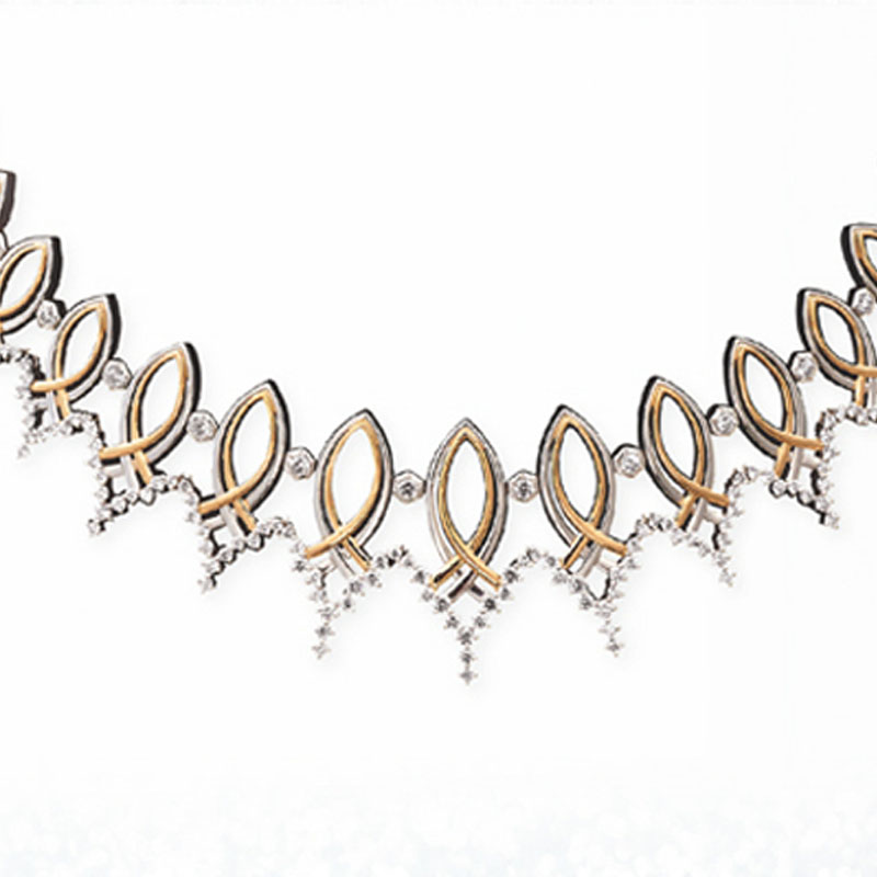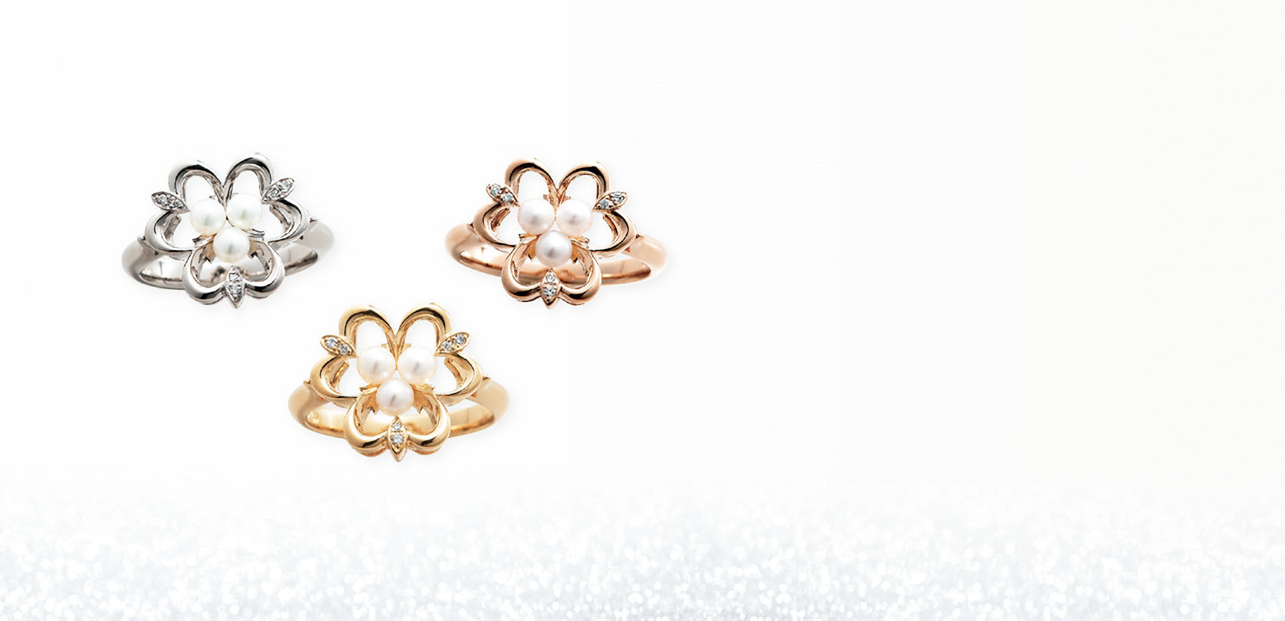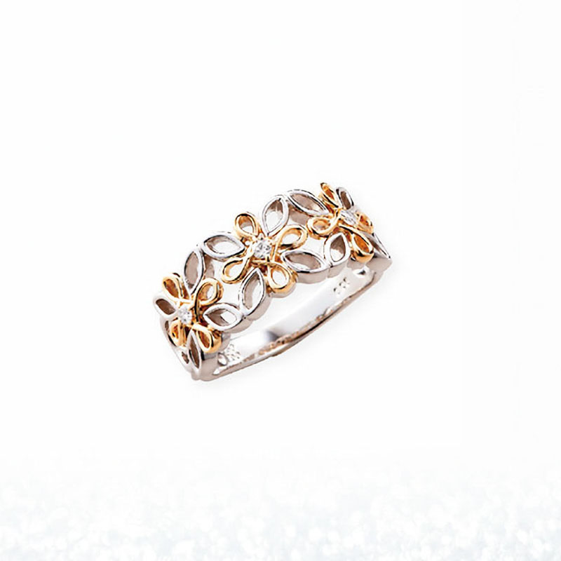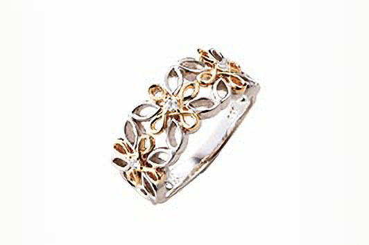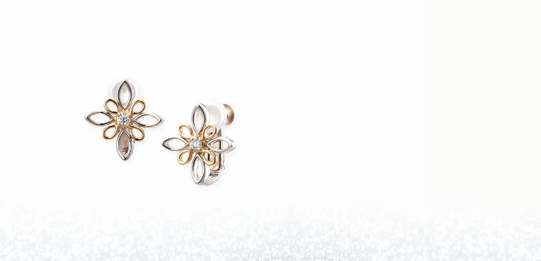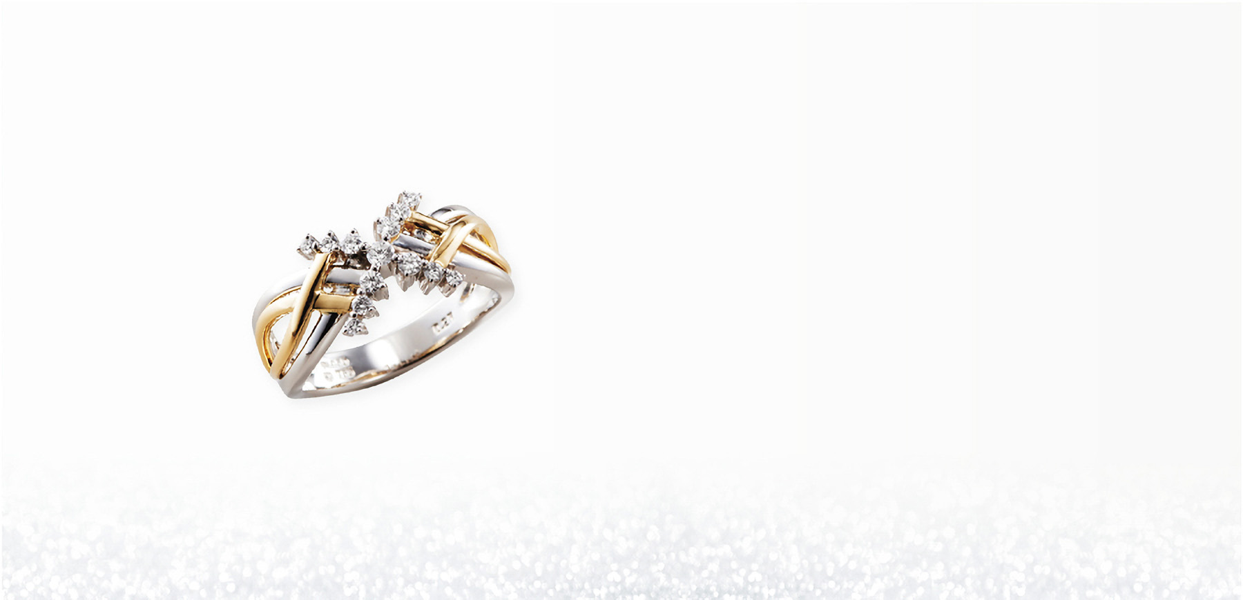 四つ葉結びをプラチナとゴールドで重ね合わせたデザイン。