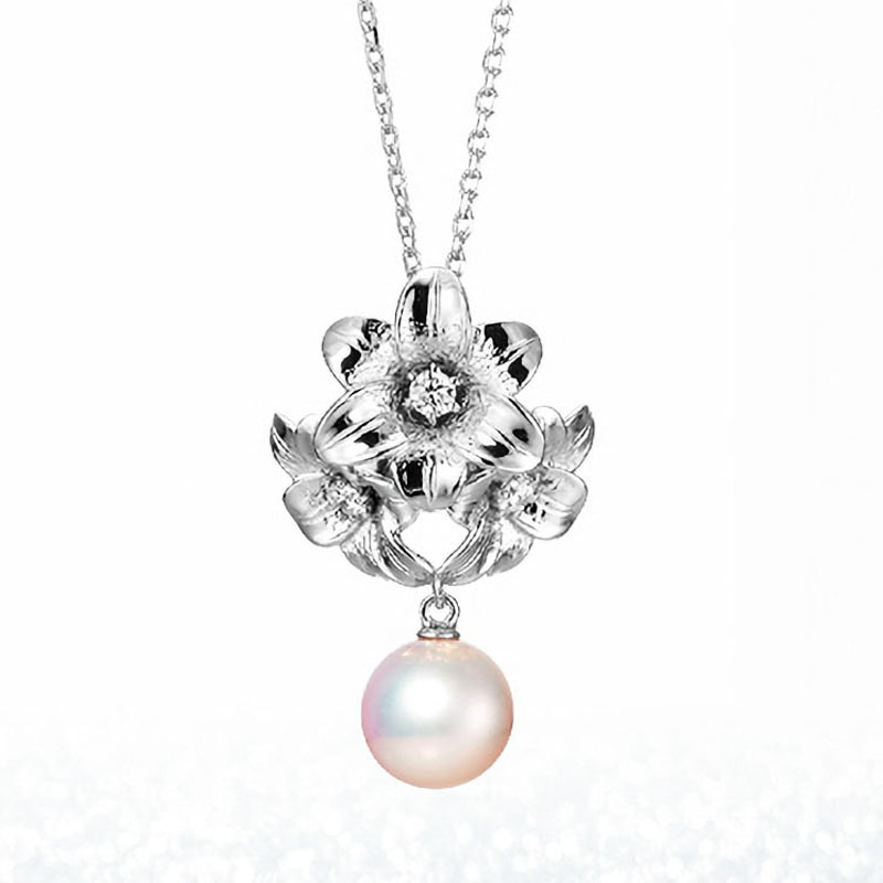 -K18/Pt950 湖水パール ダイヤモンド ペンダント