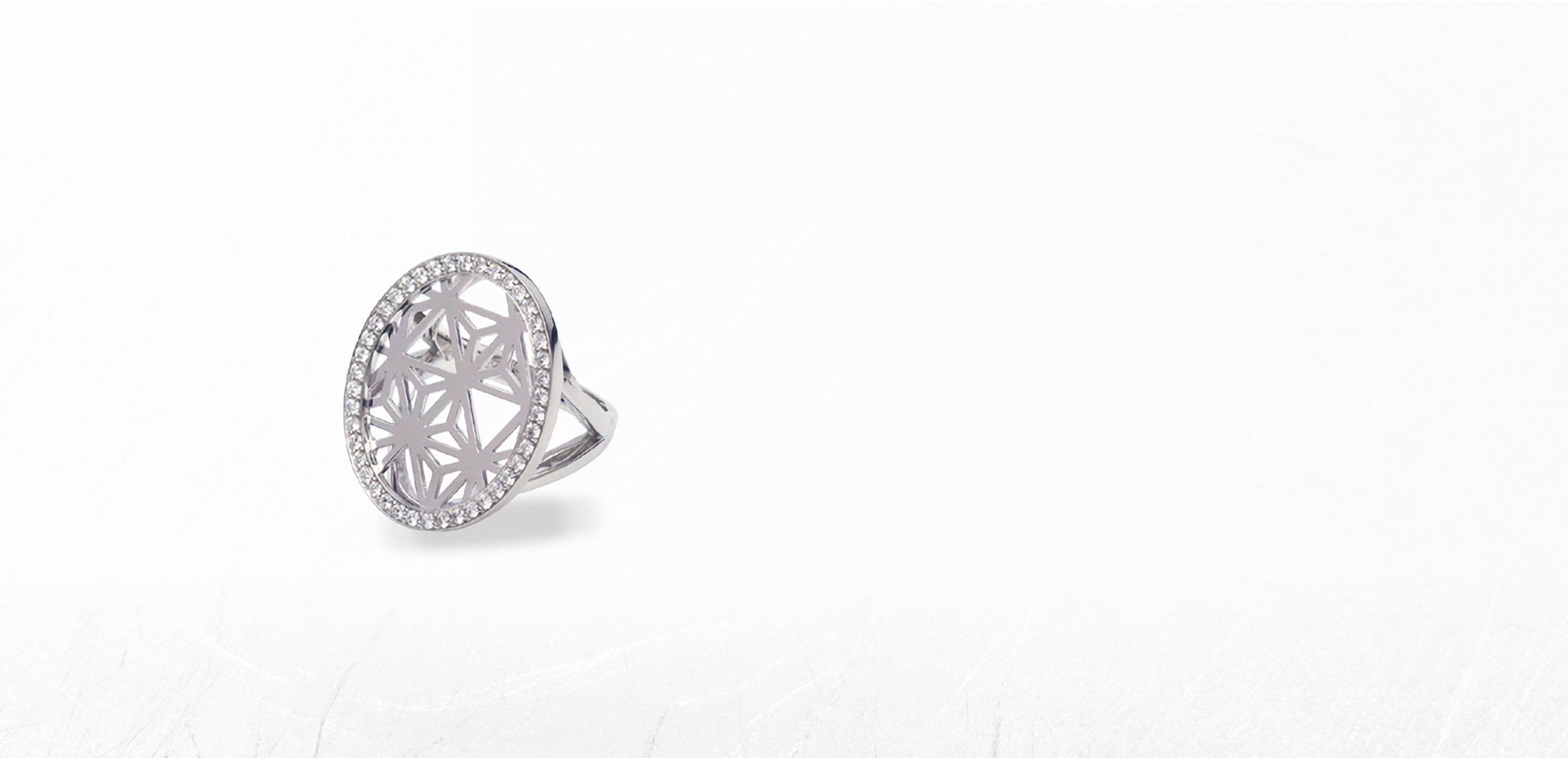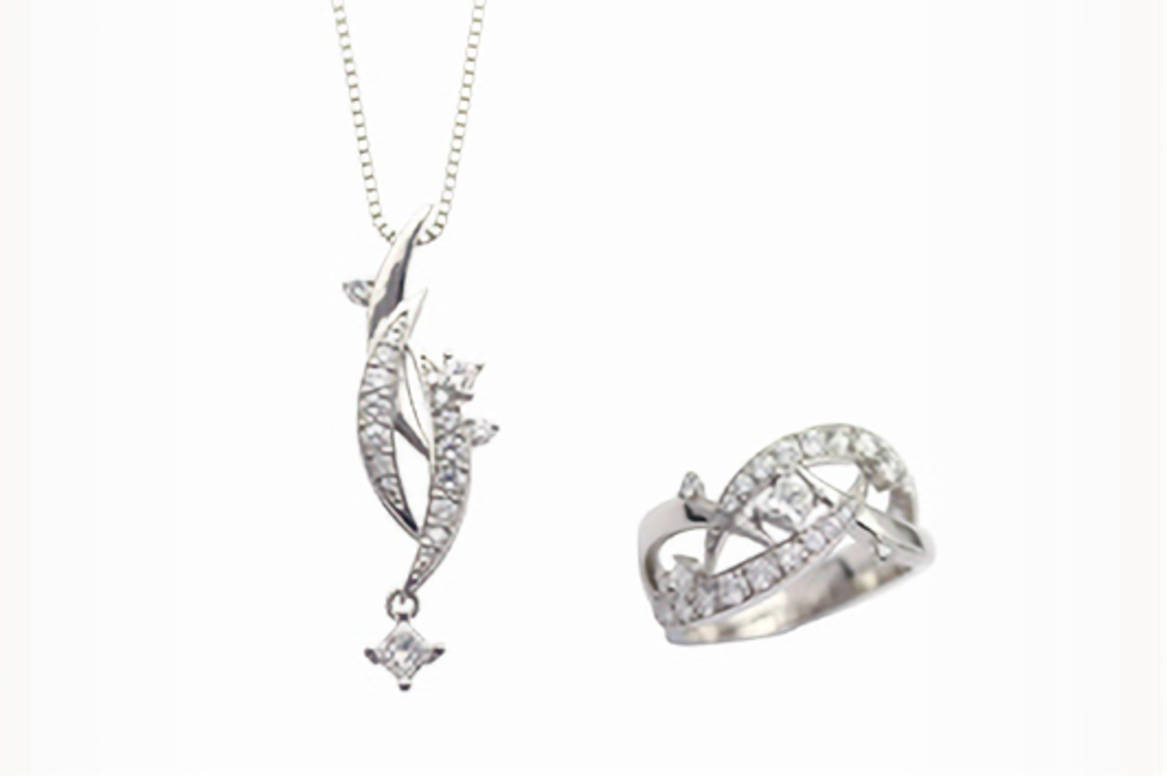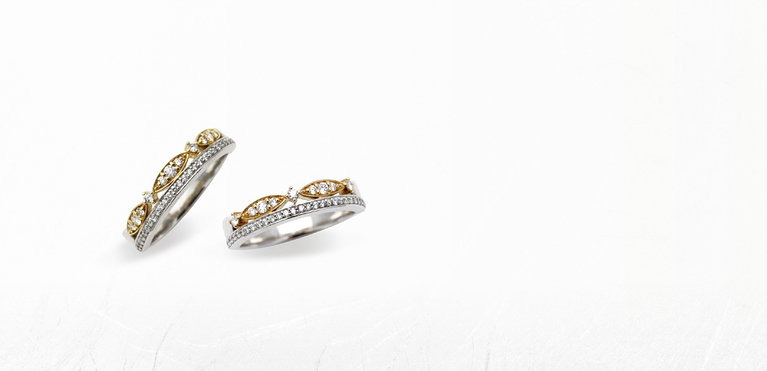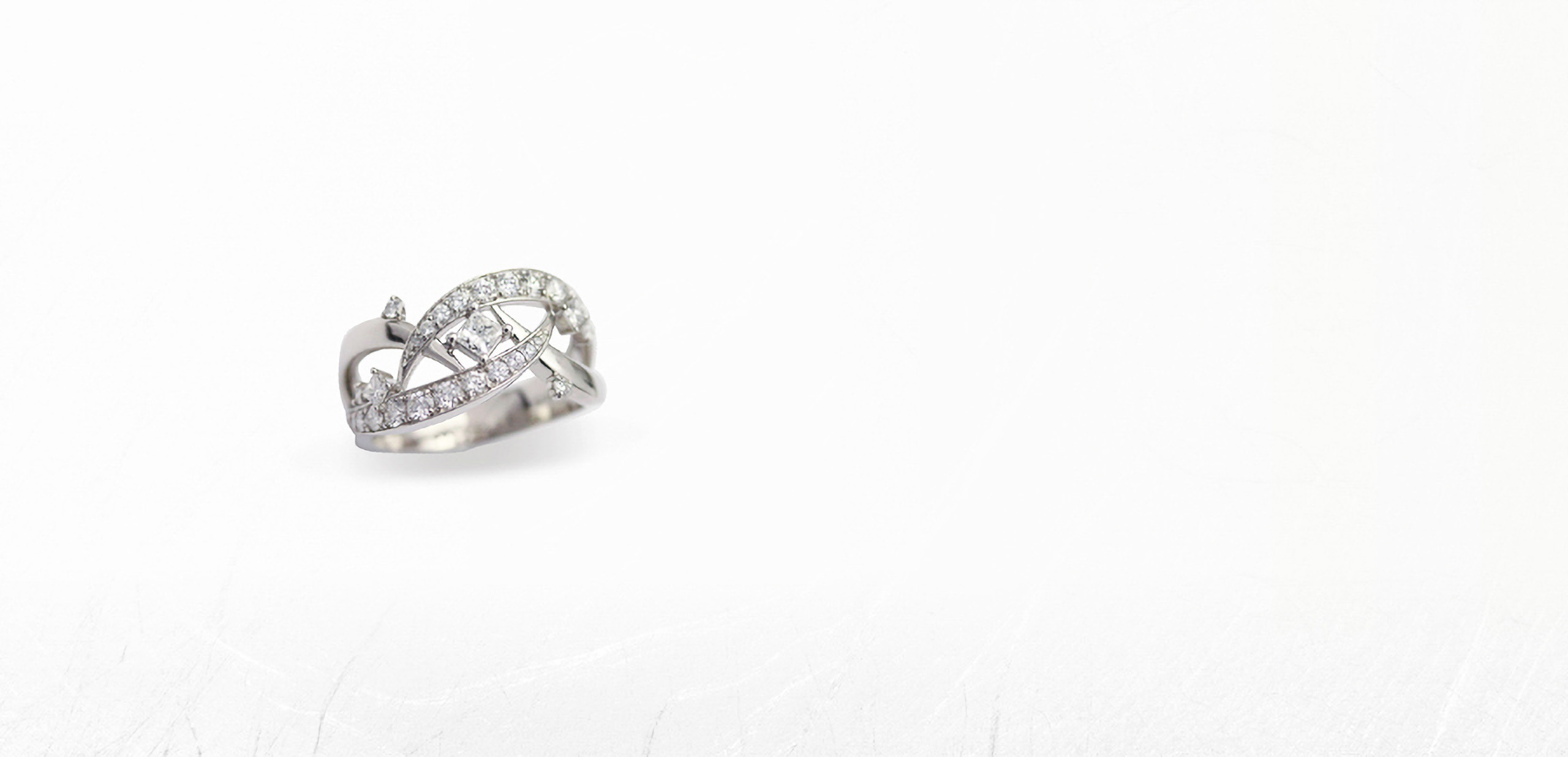 香の図をモチーフにプラチナ、ホワイトゴールド、