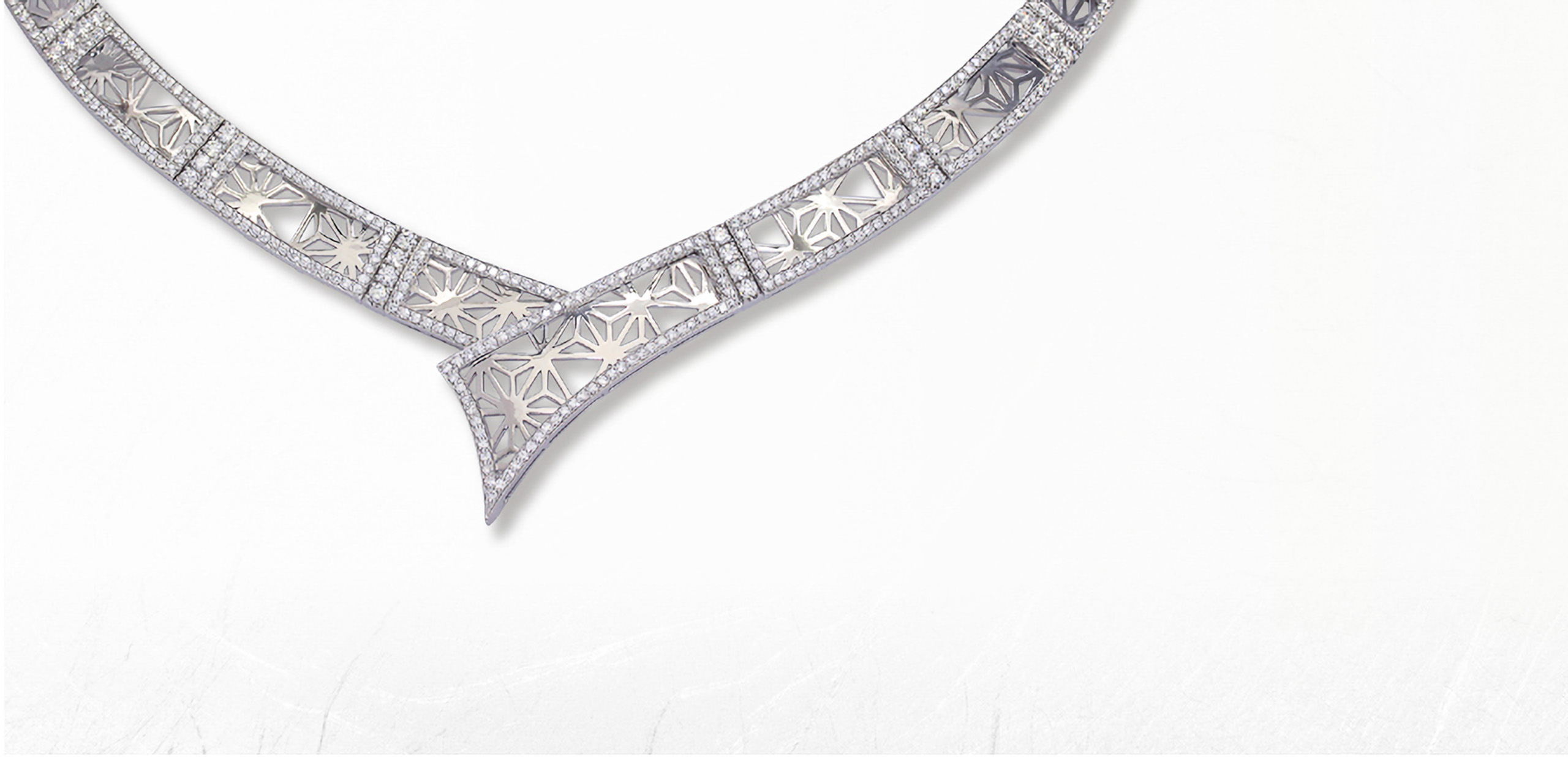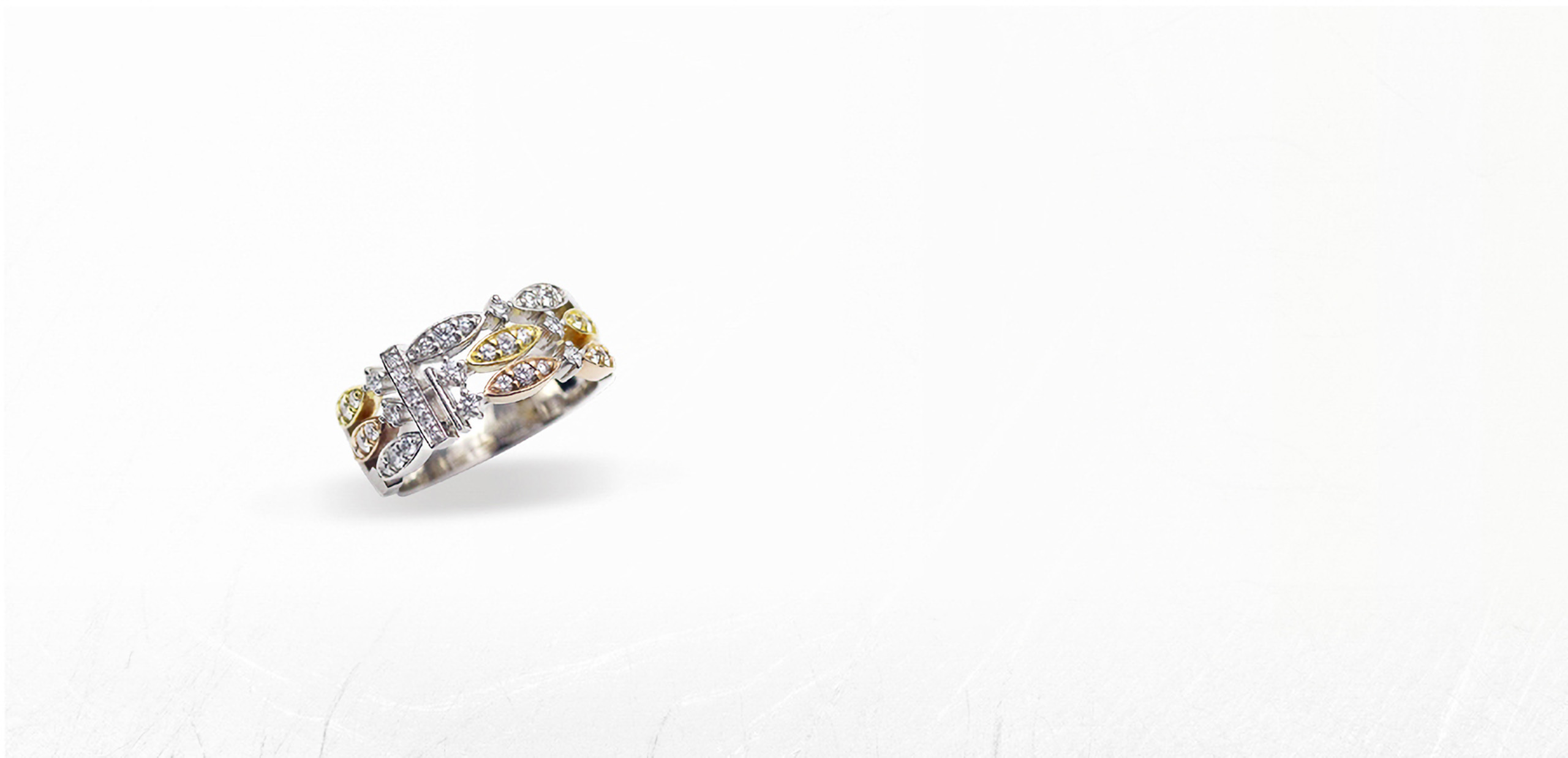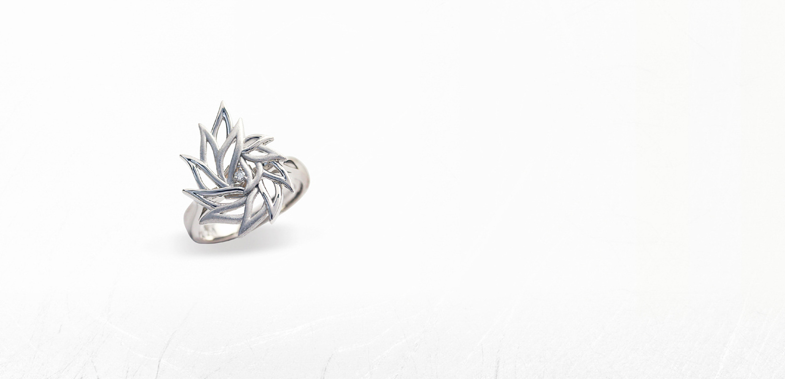 香の図をモチーフにプラチナ、ホワイトゴールド、