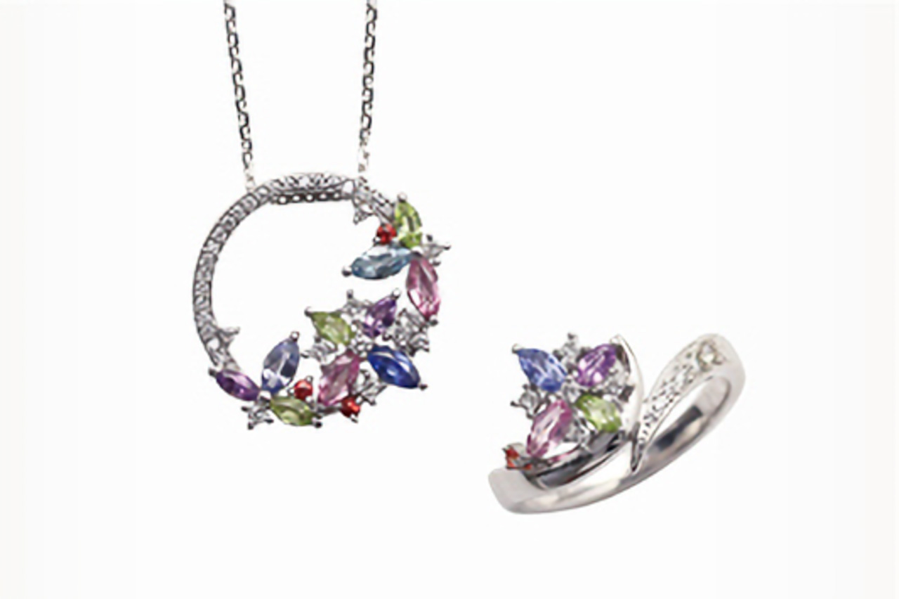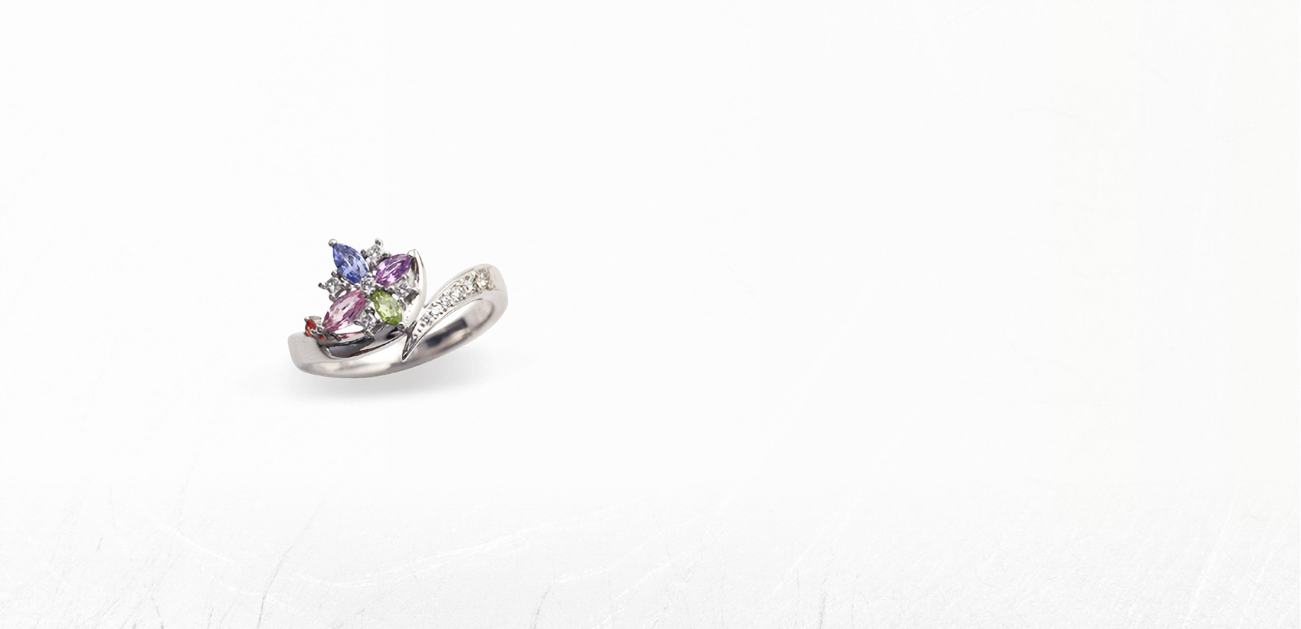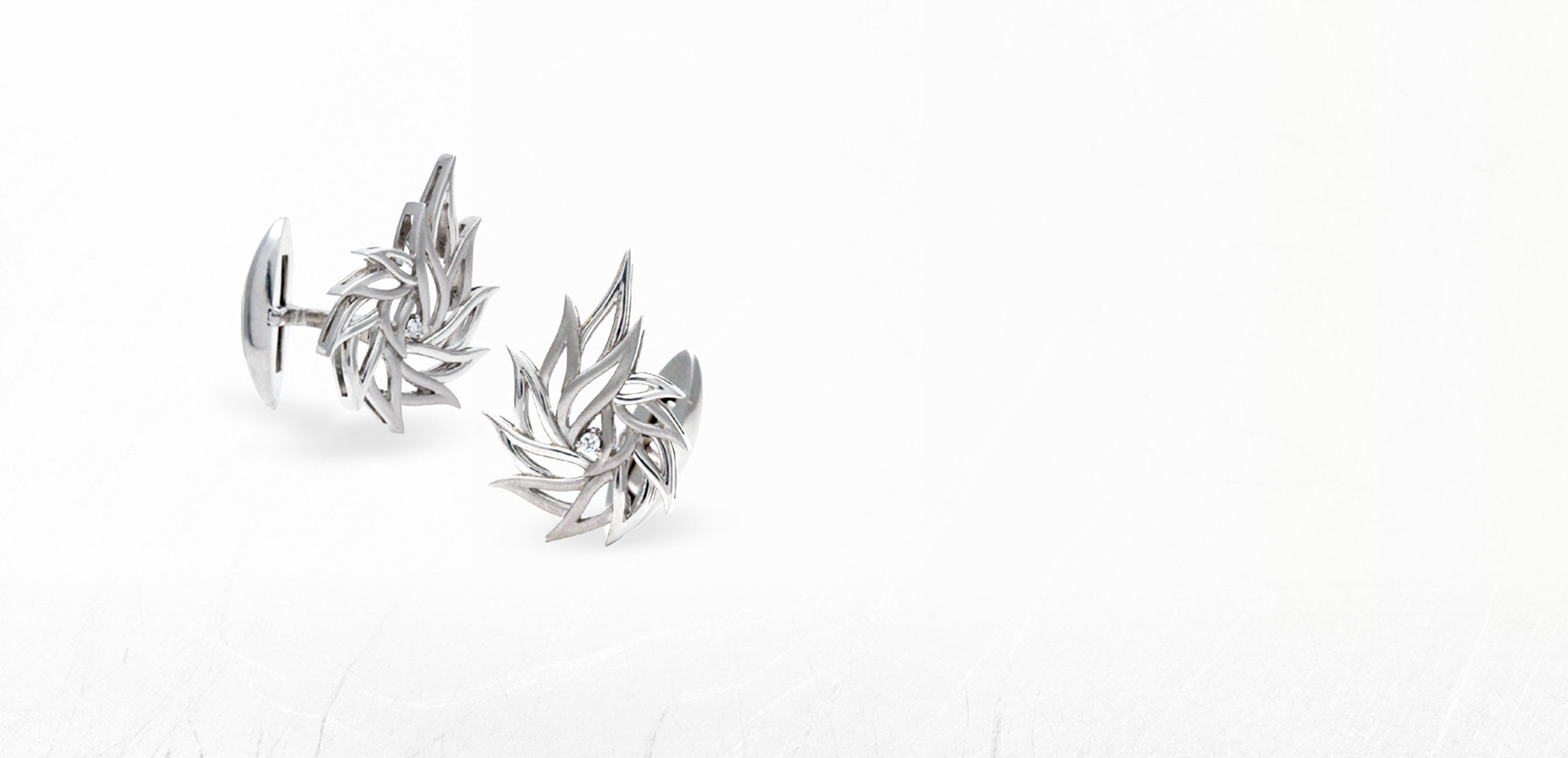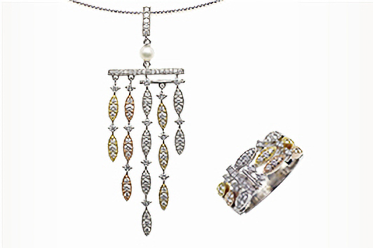 香の図をモチーフにプラチナ、ホワイトゴールド、