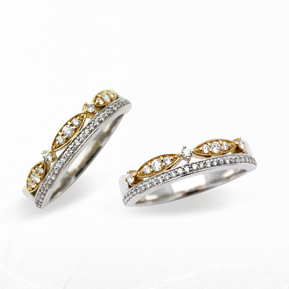 〈左〉Pt950/K18YG ダイヤモンド リング