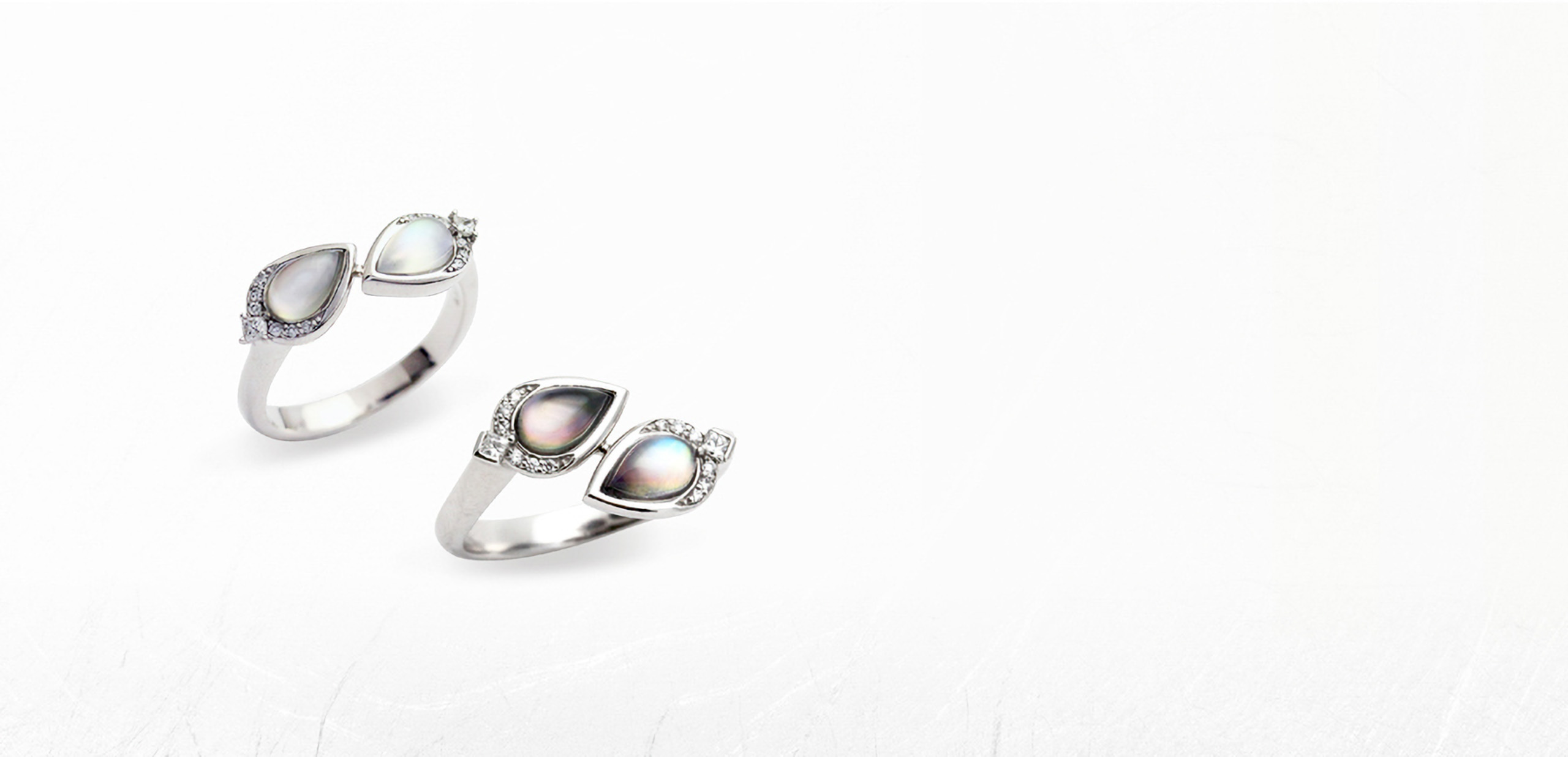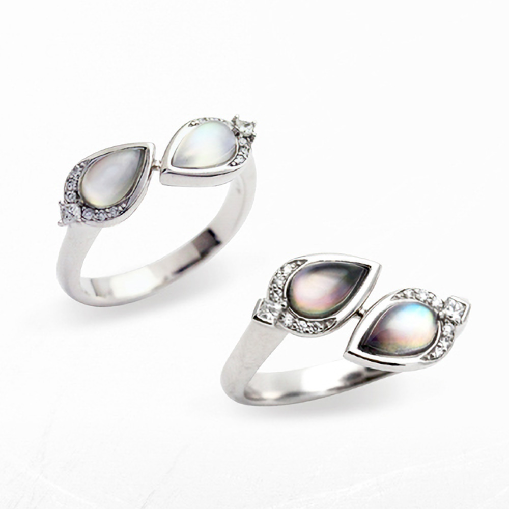 〈左〉Pt950 ダイヤモンド ブルームーンストーン 白蝶貝 リング