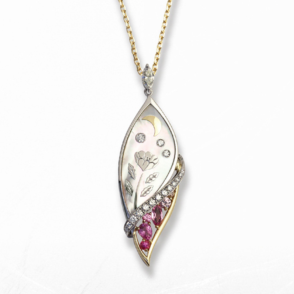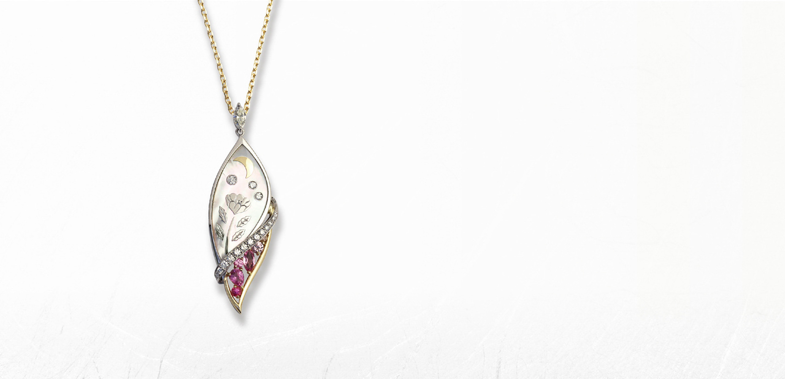 ピンクサファイア ダイヤモンド 白蝶貝 ペンダントトップ