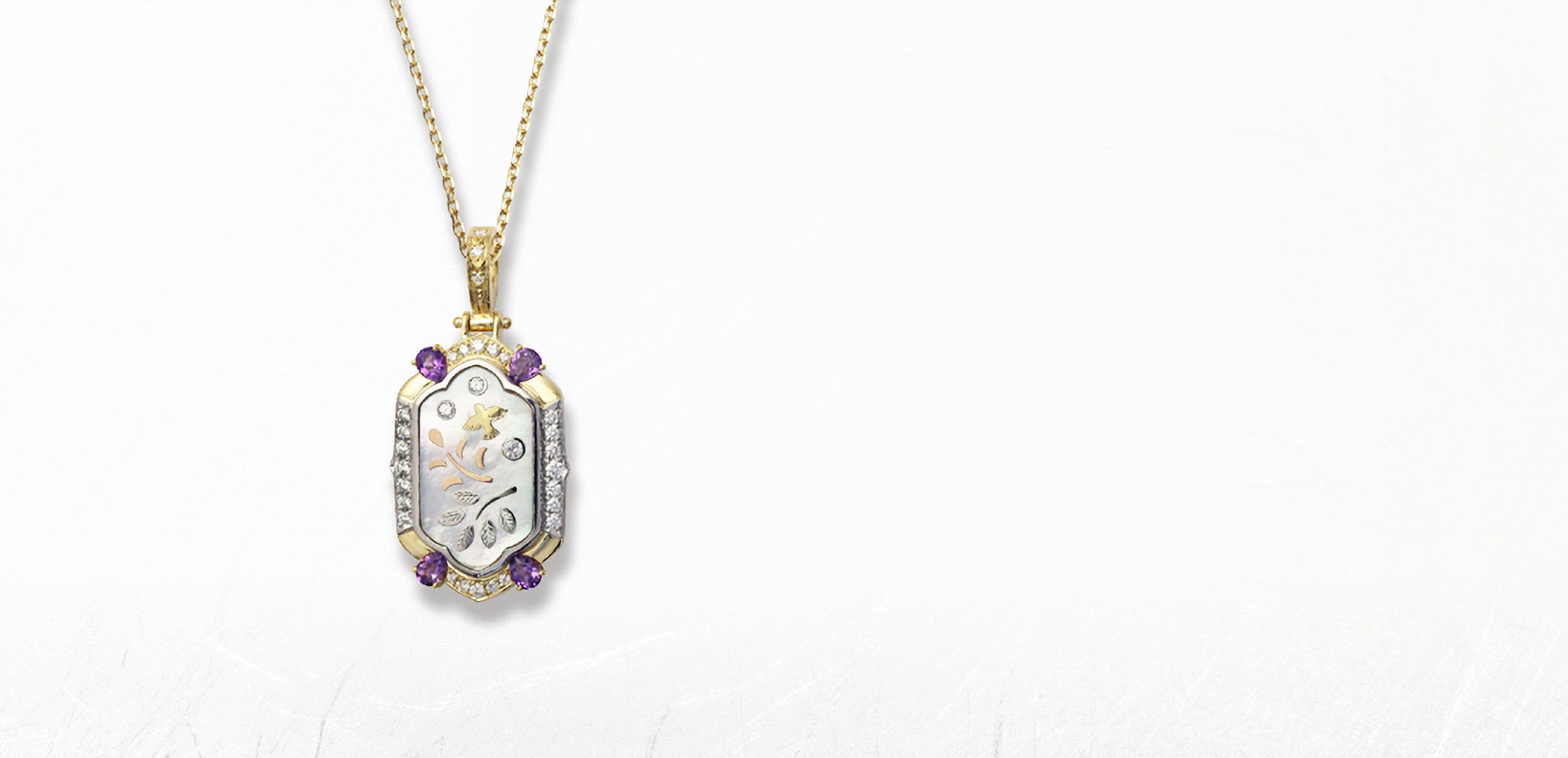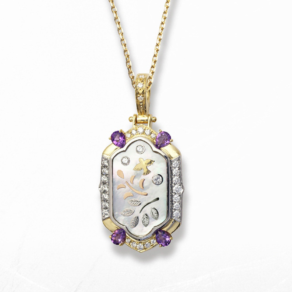 アメジスト ダイヤモンド 白蝶貝 ペンダントトップ